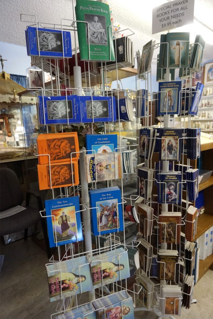 We have a large selection of rosaries, prayer cards, saint medals, Saint candles, English and Spanish prayer books, statues + more, all at a reasonable prices.